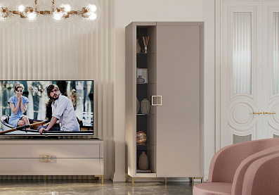 Шкаф Анри с полками Давос Трюфель, Темный лен