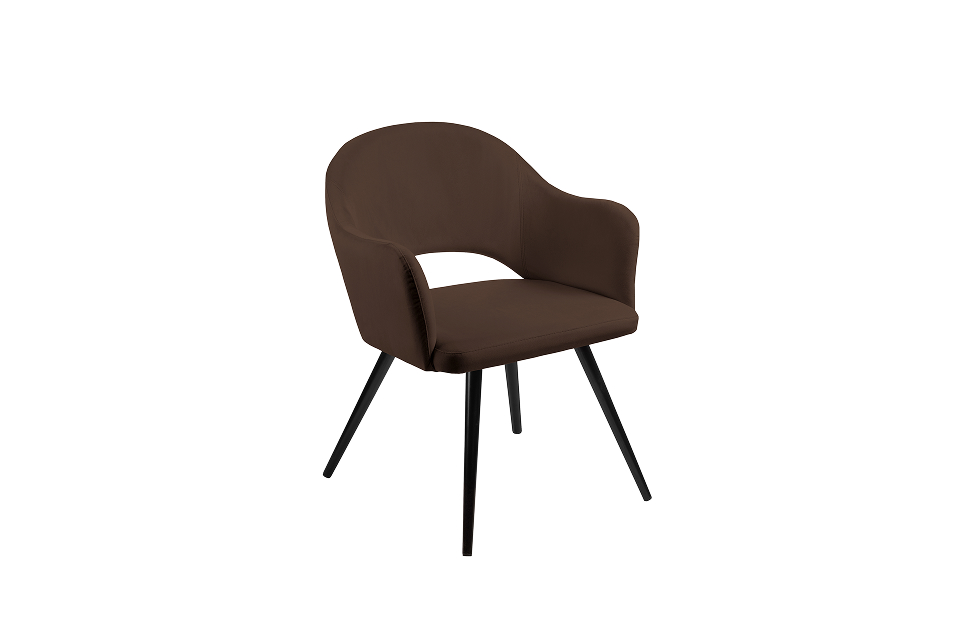 Стул-кресло Грейс с поворотным механизмом прекрасно впишется в любой интерьер и комнату. Такой стул можно использовать как в качестве обеденного стула, так и в виде рабочего кресла к письменному столу. Обивка из велюра в актуальном коричневом оттенке прекрасно гармонирует с металлическими ножками черного цвета. Такие стулья украсят современные интерьеры, а также пространства в стиле эклектики.